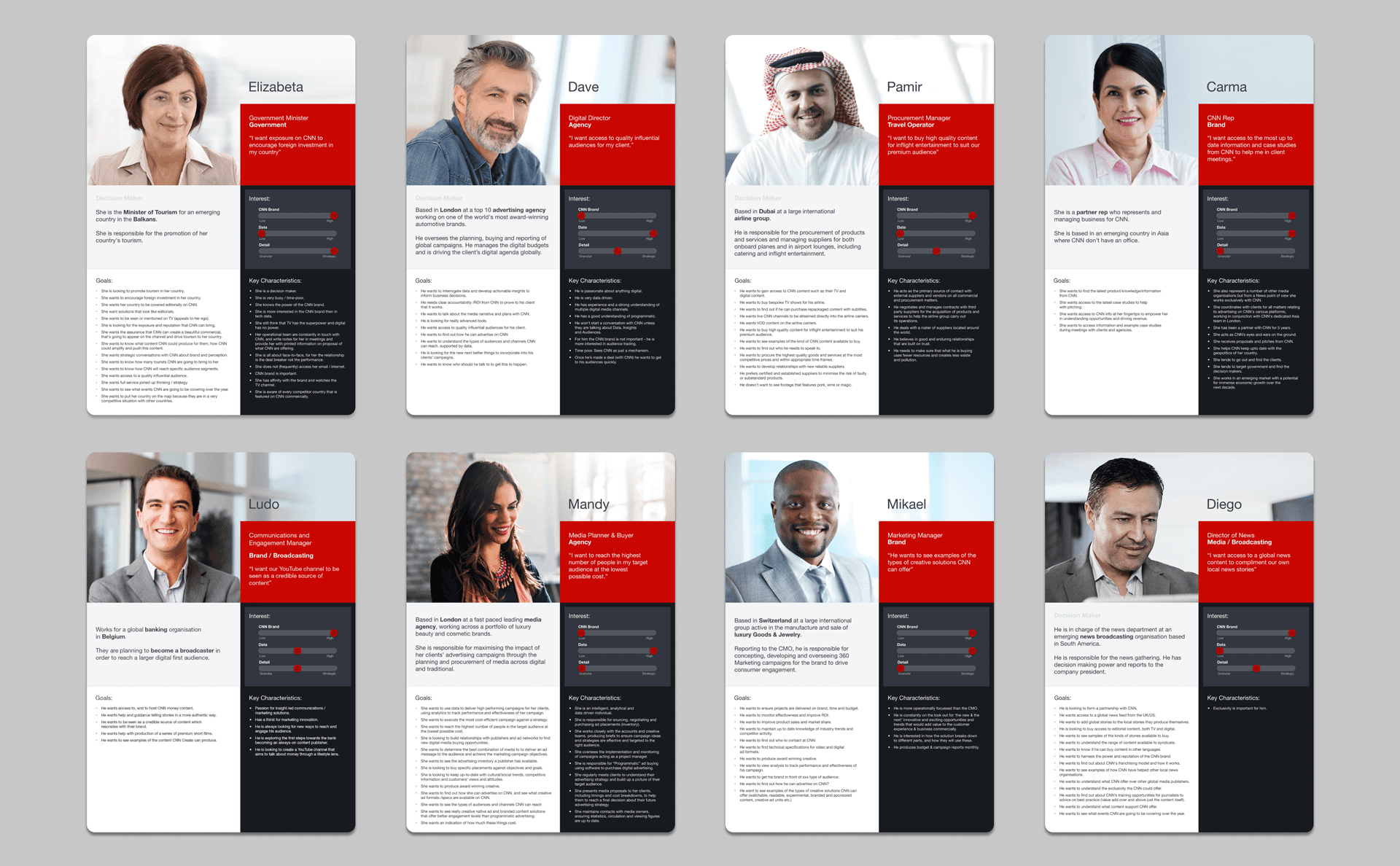 We began with a discovery phase, diving into user research and stakeholder interviews to align business goals with user needs. I co-facilitated interviews with senior CNNIC stakeholders from Ad Sales, Content Partnerships, Digital Commercial Strategy, and more, travelling to CNN’s offices in London and Paris for in-depth discussions.