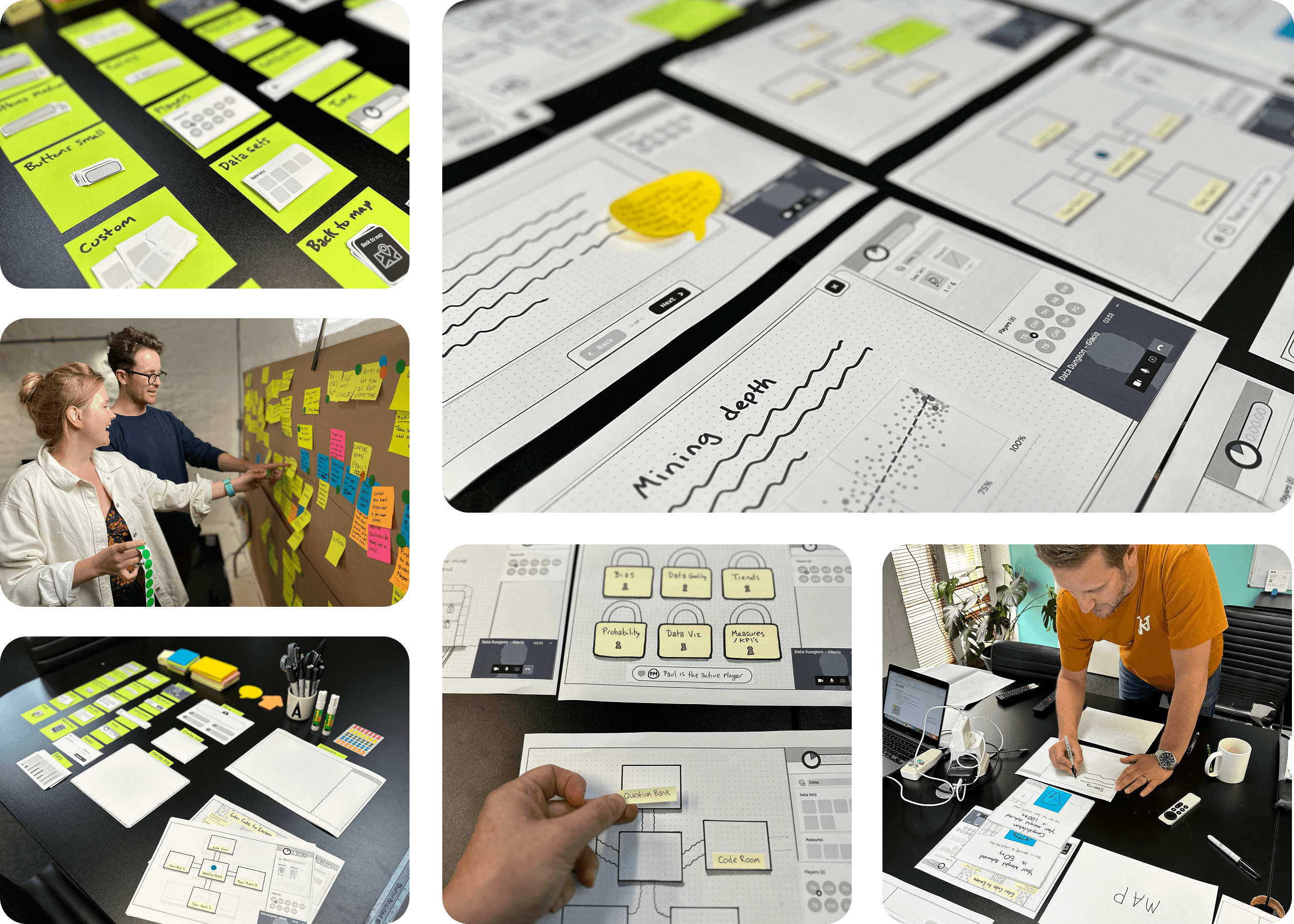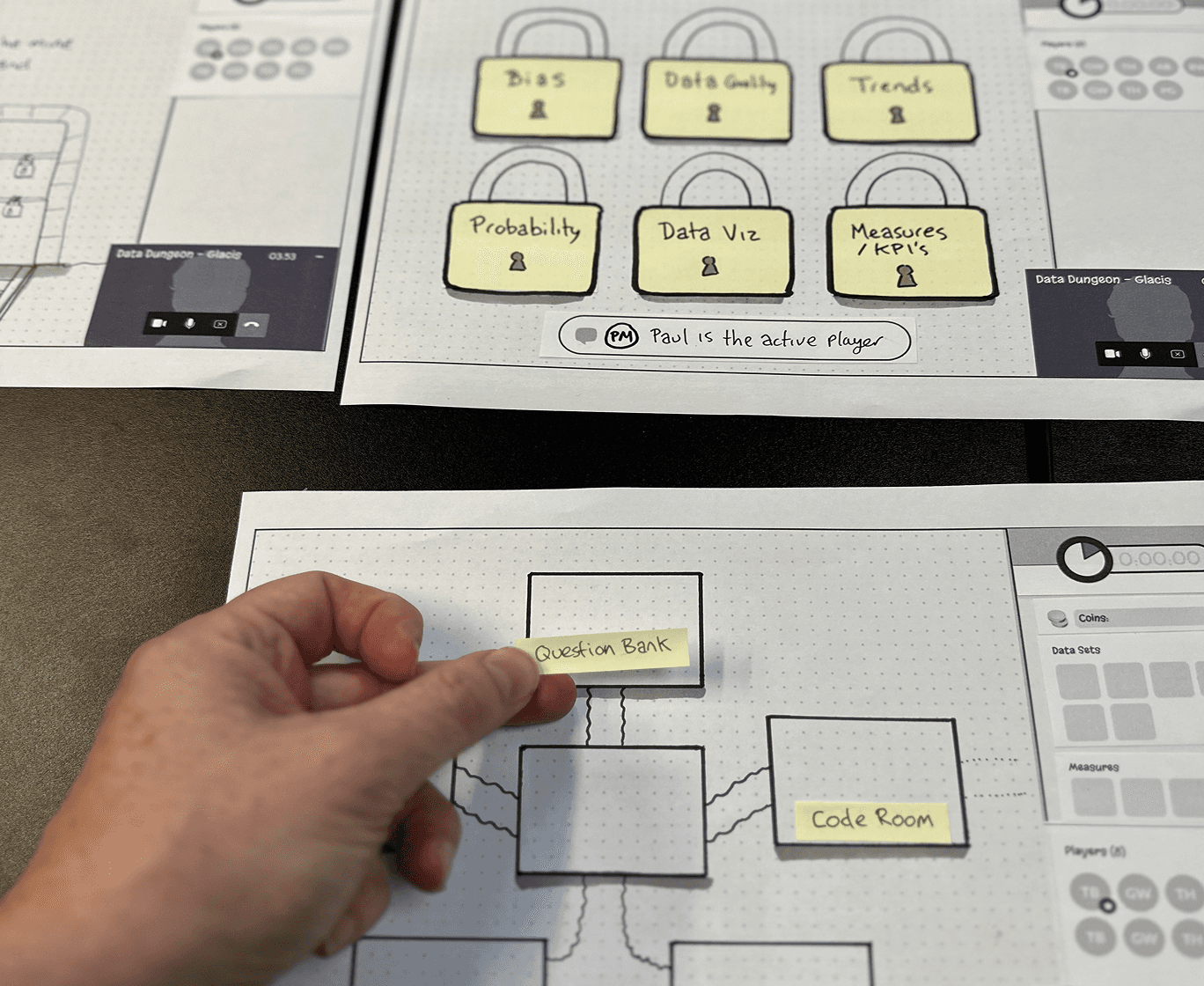 In the discovery phase, I led co-design workshops, user journey mapping, and paper prototyping to shape the product. This self-directed version required thoughtful UX design to replace the live facilitator role with automated onboarding, in-game feedback, and progression systems.