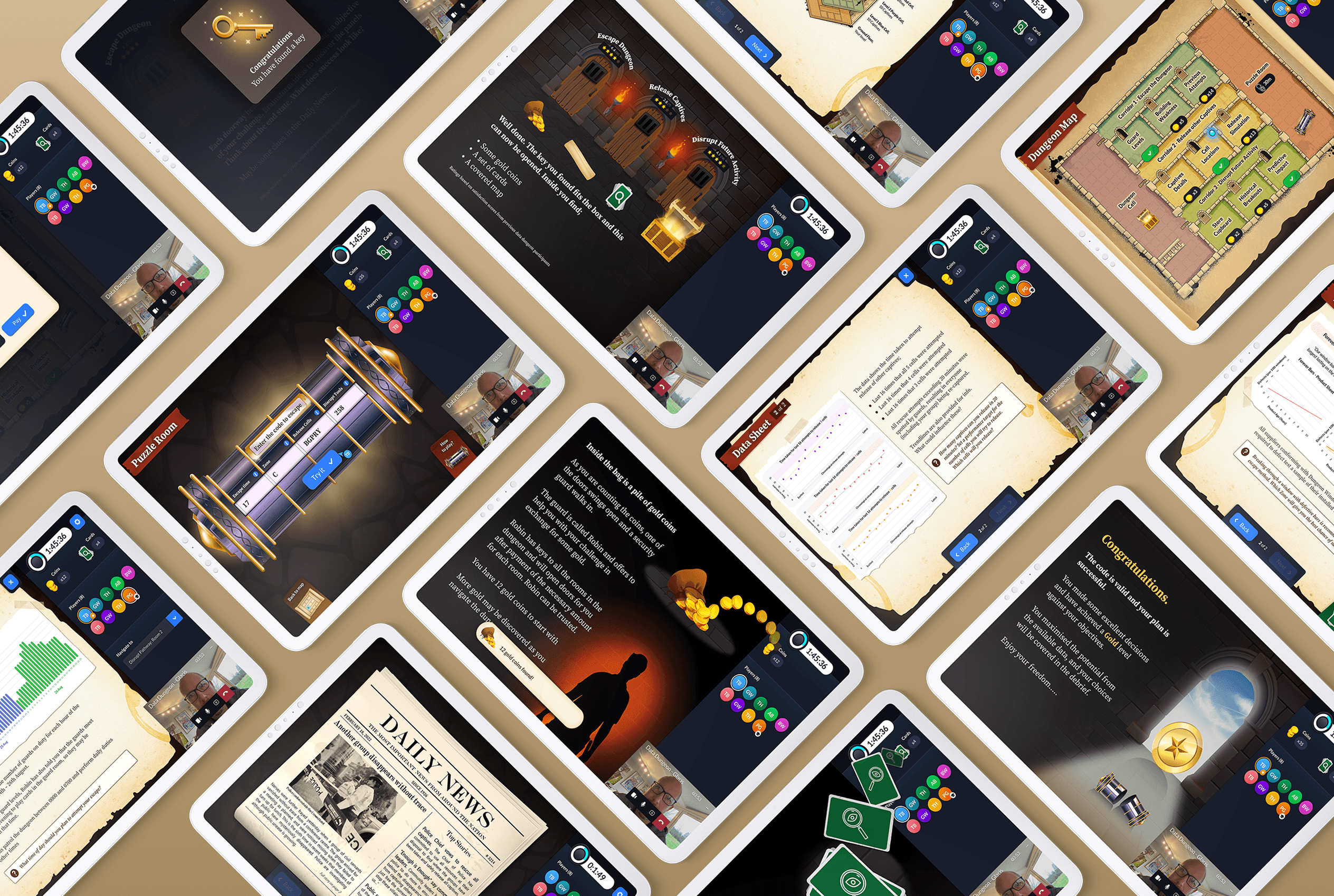 The Data Escape Room is an award-winning multiplayer eLearning platform that helps professionals build data literacy through an immersive escape room game. With creative themes like dungeons and abandoned mines, players work together to solve data-focused puzzles in a fun, engaging environment designed for corporate training.