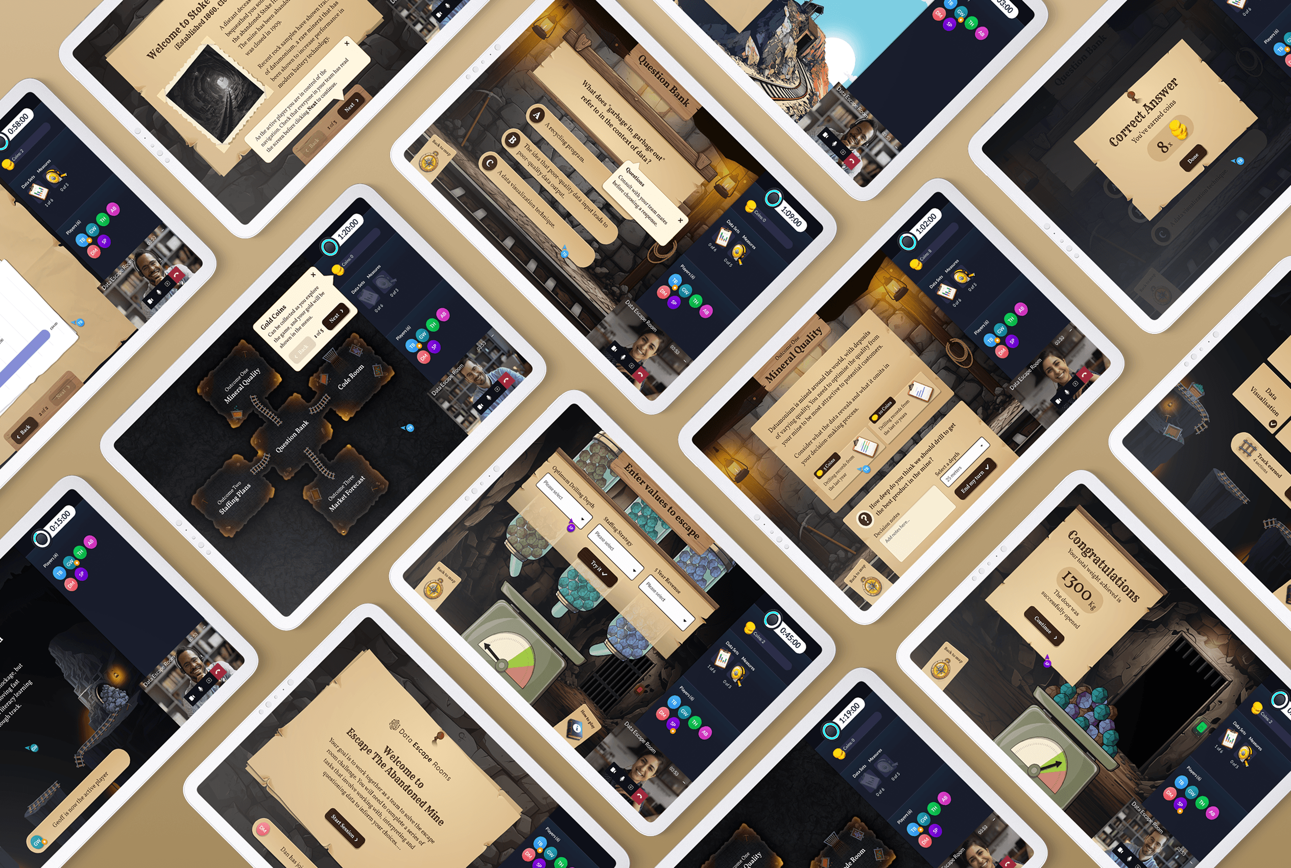 This is a self-guided, scalable product designed for SaaS deployment. This unmoderated version immerses players in an abandoned mine theme filled with old mine carts, broken tracks, dark caverns and precious minerals.