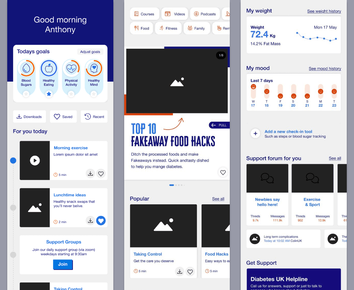 Between sessions, I iterated on the prototype, introducing lightweight personalisation such as using participants’ names and diabetes type within messaging. This had a noticeable positive impact on engagement.