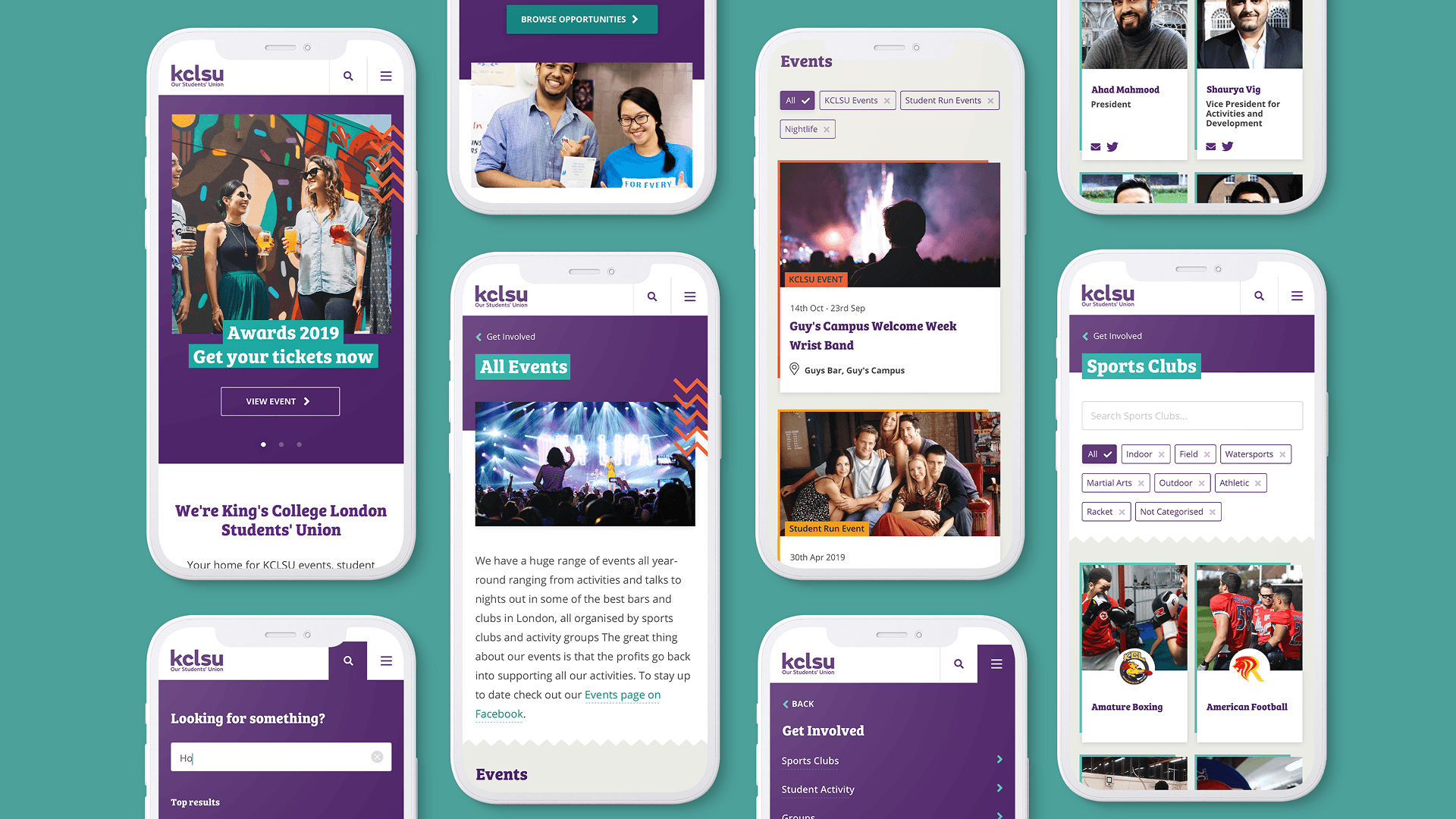 KCLSU is the student-led union representing over 35,000 King’s College London students. As part of a wider digital transformation, they needed a new website to replace their outdated and hard-to-navigate platform. The goal was to create a vibrant, mobile-friendly hub that better reflected student life and supported future growth.