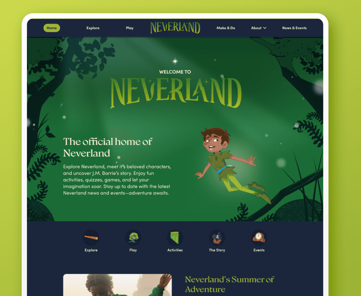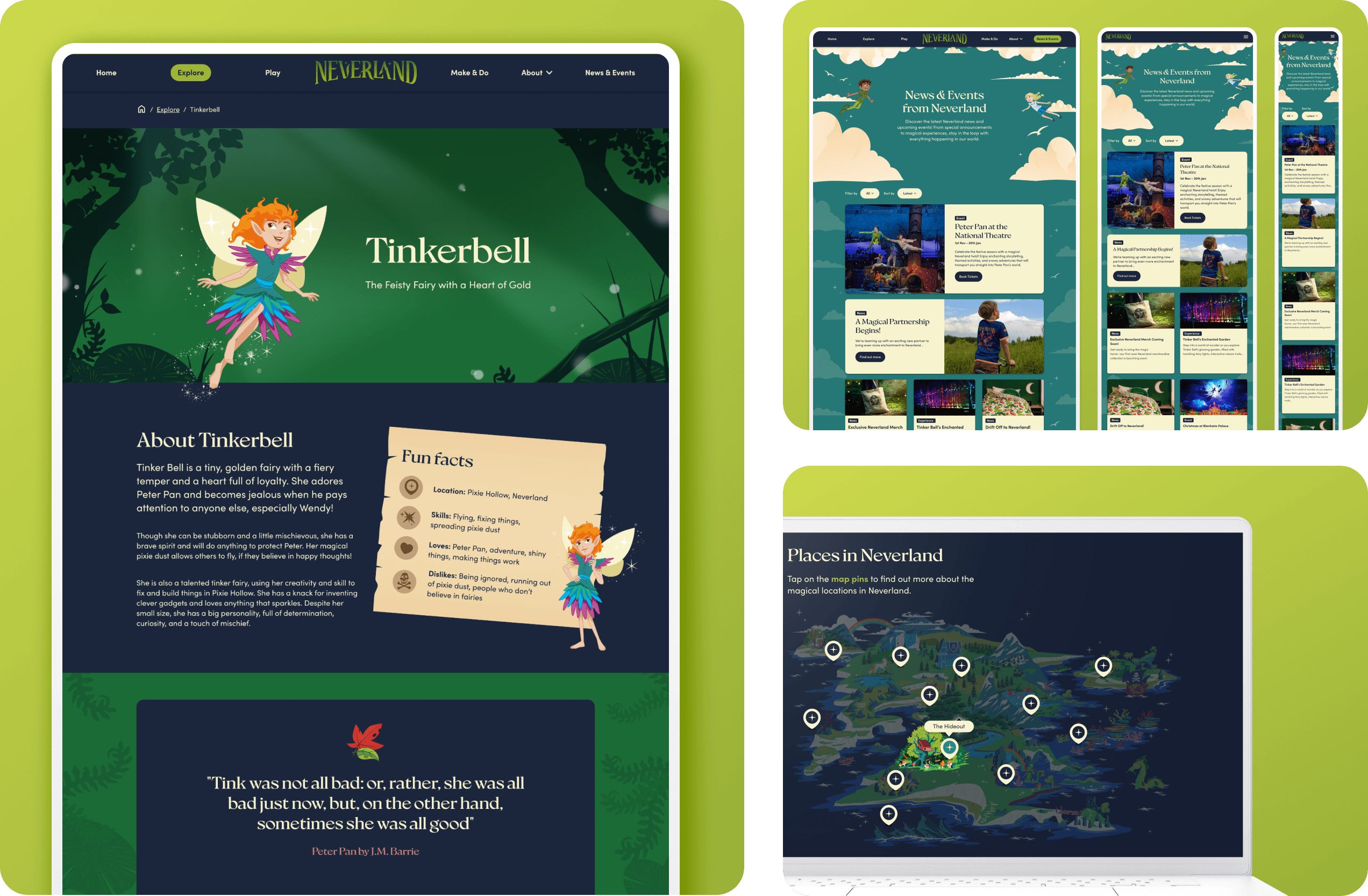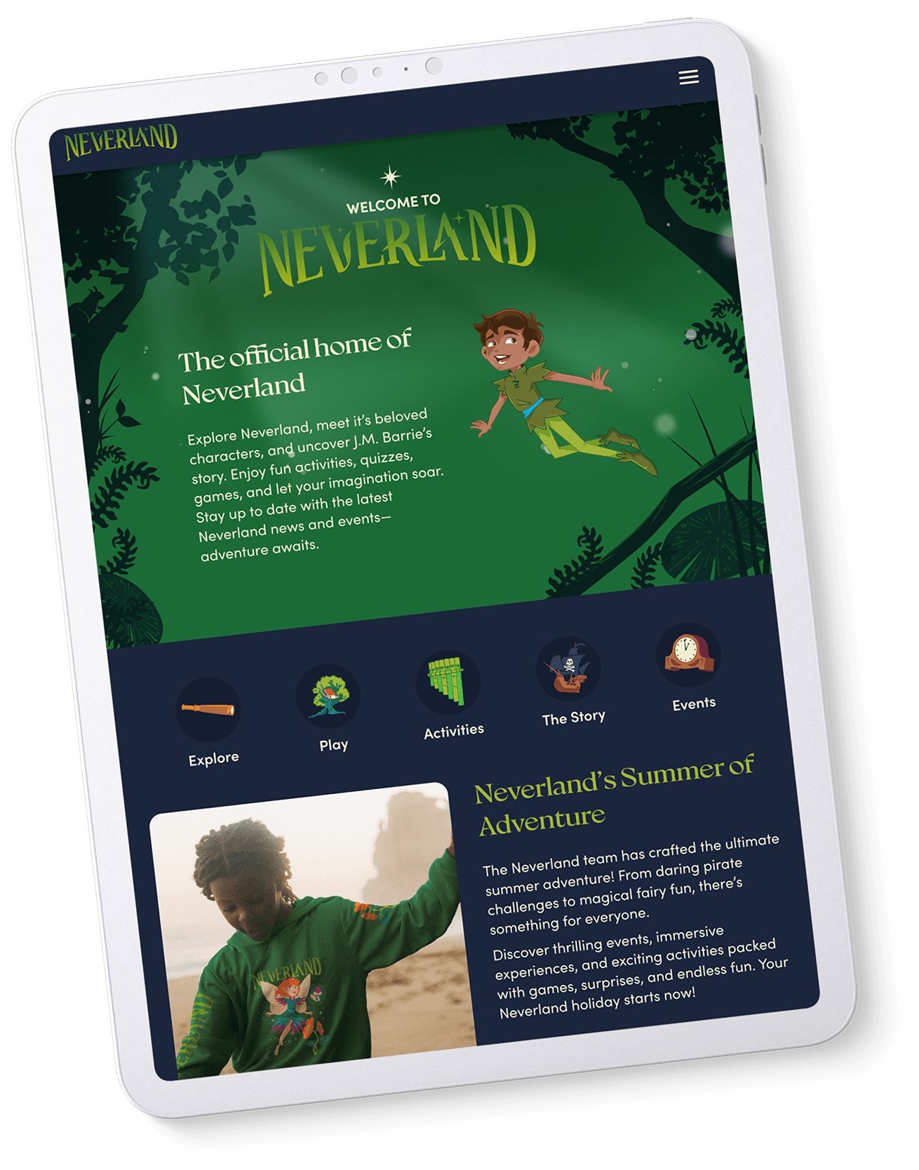 The result is a flexible platform designed for growth, that empowers the GOSH digital team to easily publish fresh content, like creative challenges, games, and quizzes, to keep kids engaged and coming back for more. A magical new official home for Neverland, for fans, families, and partners.