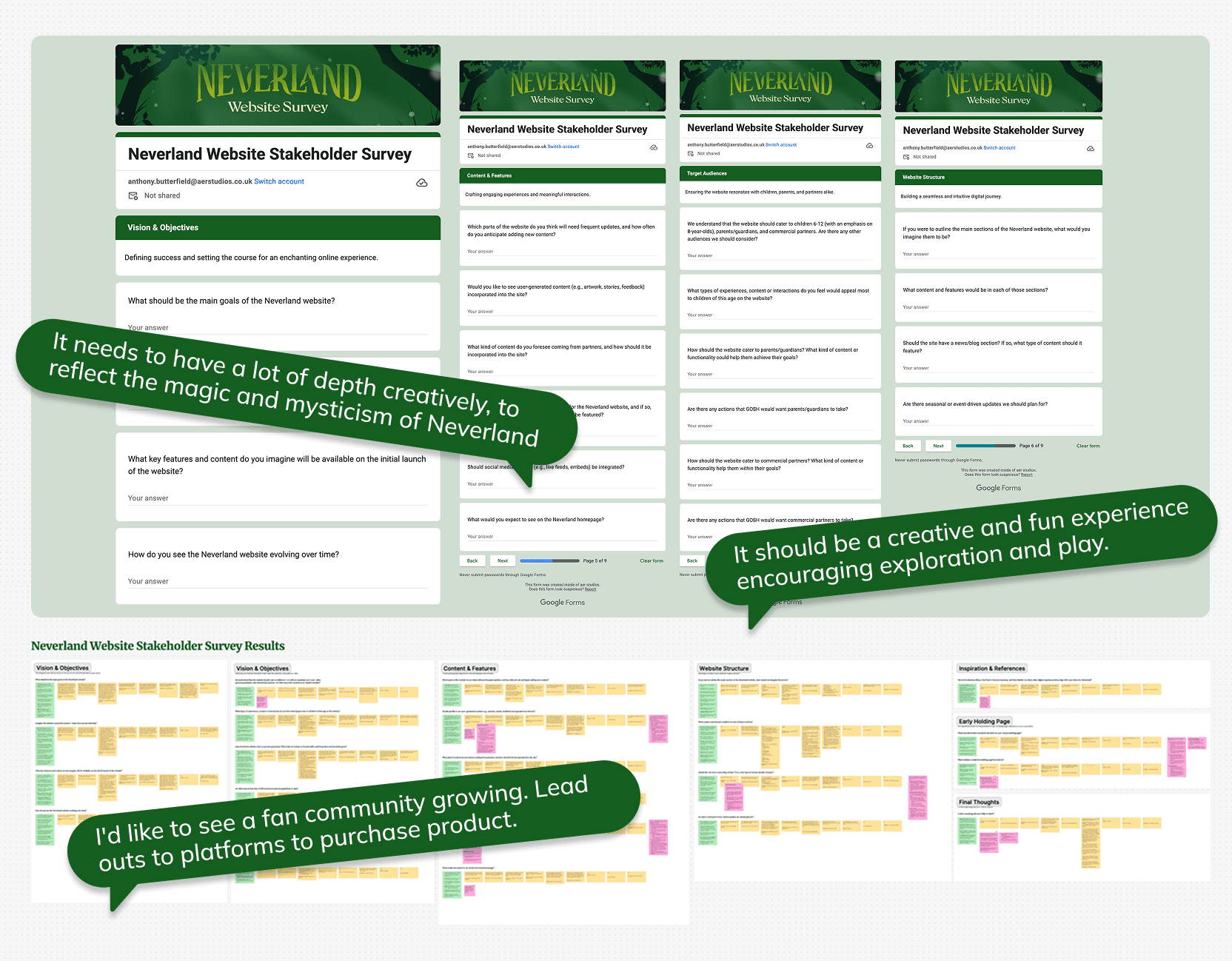 I ran a stakeholder survey across fundraising, licensing, retail and digital teams to understand vision, business goals and assumed audience needs.