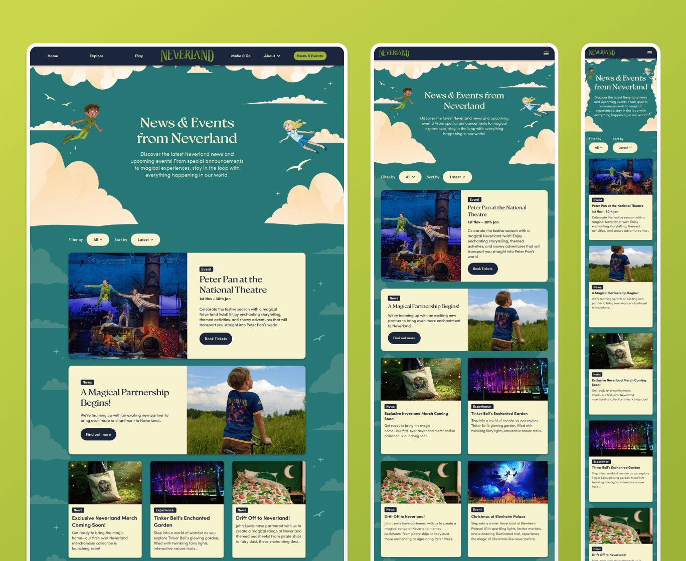 I was responsible for the UX and design from pitch to launch. The result is a rich, responsive site that brings Neverland to life through playful design, animations and a flexible structure built to grow with the brand.