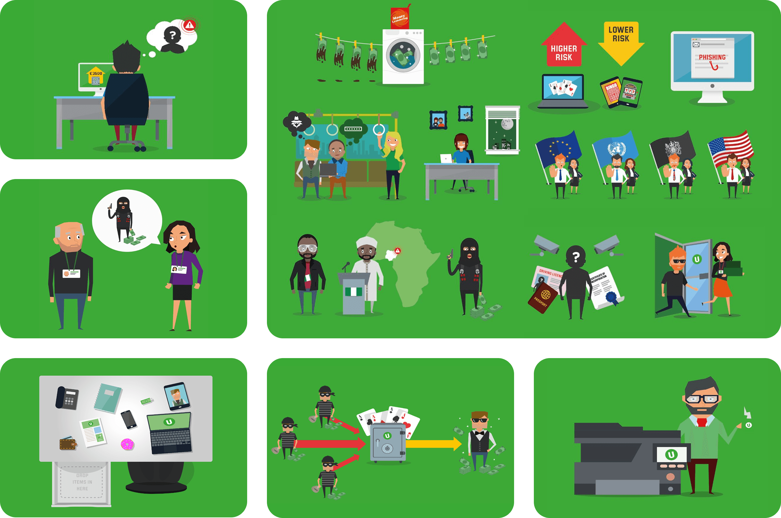 I developed a consistent, brand-aligned illustration style to bring relatable cybersecurity scenarios to life.