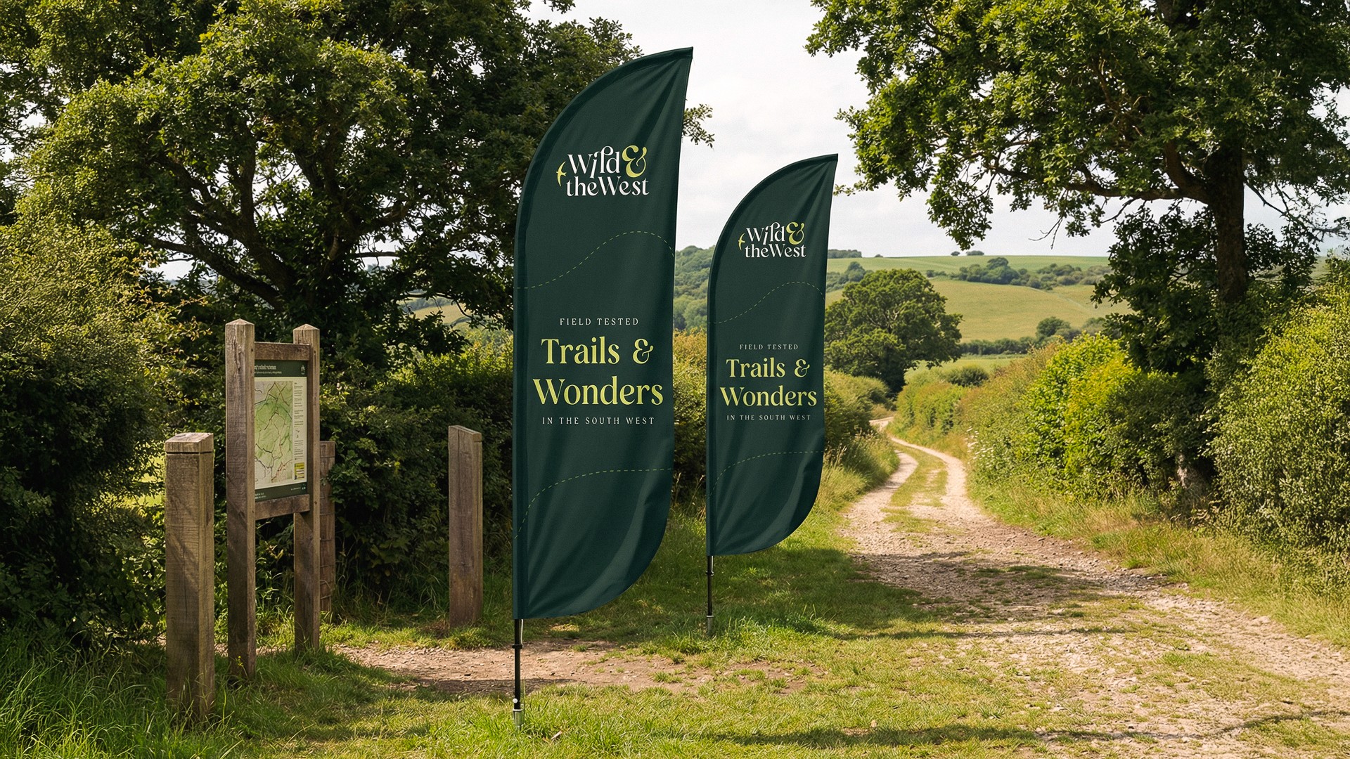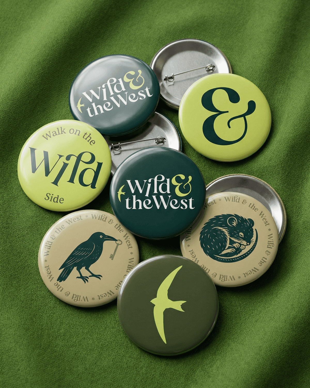 The visual identity balances heritage with a modern, outdoors feel. The colour palette draws from deep greens and Bath stone inspired neutrals, with a bright green accent to introduce energy and a sense of wildness. The logo uses subtle letterform offsets to introduce movement with a swift flying west symbolises nature, freedom, and the brand’s connection to the South West.