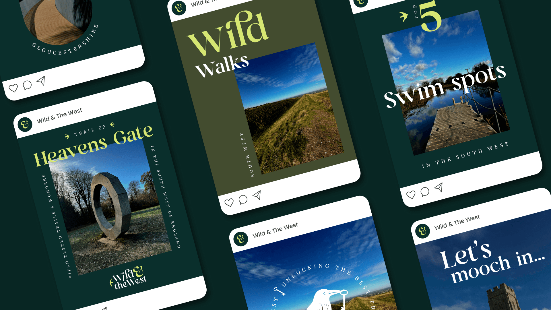 I designed a flexible set of social media templates to support launch and ongoing engagement. Content ranges from walk specific highlights and reels to broader discovery formats such as the “Let’s Mooch In…” series, which spotlights towns across the South West with curated recommendations.